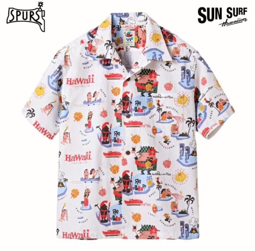 楽園ハワイを象徴するアロハシャツ。その発祥には日系移民が深く関わっており、トロピカルな柄だけでなく和柄もヴィンテージとして存在する。ハワイが観光地として確立した20世紀半ばには、土産物としてのアロハシャツの需要が一気に増加。デザインやパターンが多様化し、多くの作品が生まれた。ヴィンテージのアロハシャツを収集する過程で、ごく稀に出会える特別な逸品。時代の流れとともに失われつつあるそれらの名作を生み出したテキスタイルデザイナーに敬意を表し、多色の贅沢なプリントや迫力のデザイン、メーカーや年代によって異なる各部のディテールまでその魅力を余すところなく完全再現する。それがサンサーフのスペシャルエディション。
