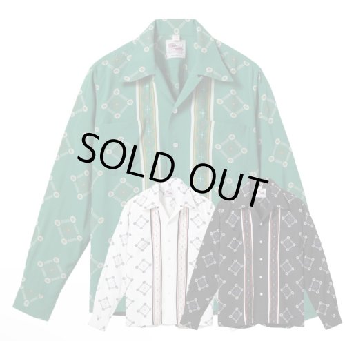 1970年代に京都からアメリカ本土に渡ったこの生地は主にスカーフとして製品化され、アロハシャツとしては極めて少数しか製作されていない。ミラー・プリントと呼ばれる転写プリントの先駆けとなった技法を用いて、多くの色を使い描かれたモチーフを見事に表現している。デザインの題材となっているのはポリネシアの部族が装着する戦士のマスクで、圧倒されるほどの迫力と美しい色合いが特徴的な一枚となっている。
