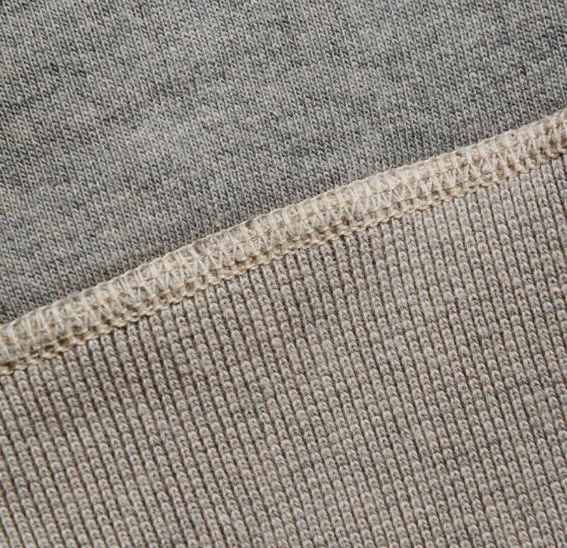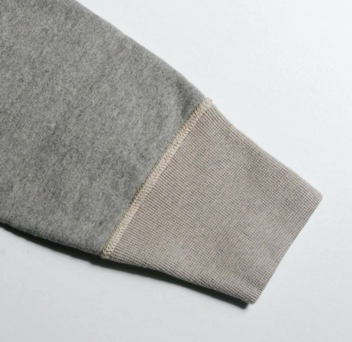 唯一和歌山に存在する旧式吊編機を使用した最高密度スウェット。密度を入れゆっくりと編み上げたしっかりとした質感と高保温性が魅力。立体形状の着易さと合わせ毎年人気のデラックスウエア定番品です。最古ヴィンテージミシン「ユニオンスペシャル フラットシーマ」を使用しながらも高品質を謳う縫製も見所のひとつ。