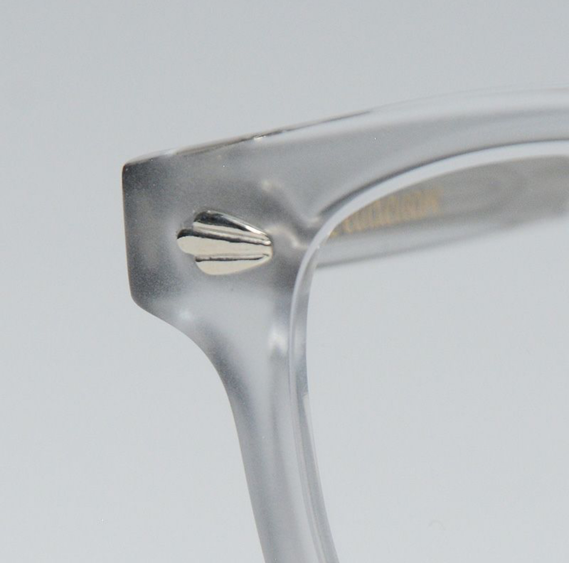 プラスチックとアクリルの中間に位置する「セルロイド」。素材取扱いの難易度から現在では大変入手困難な素材。このフレームは全てセルロイド製。