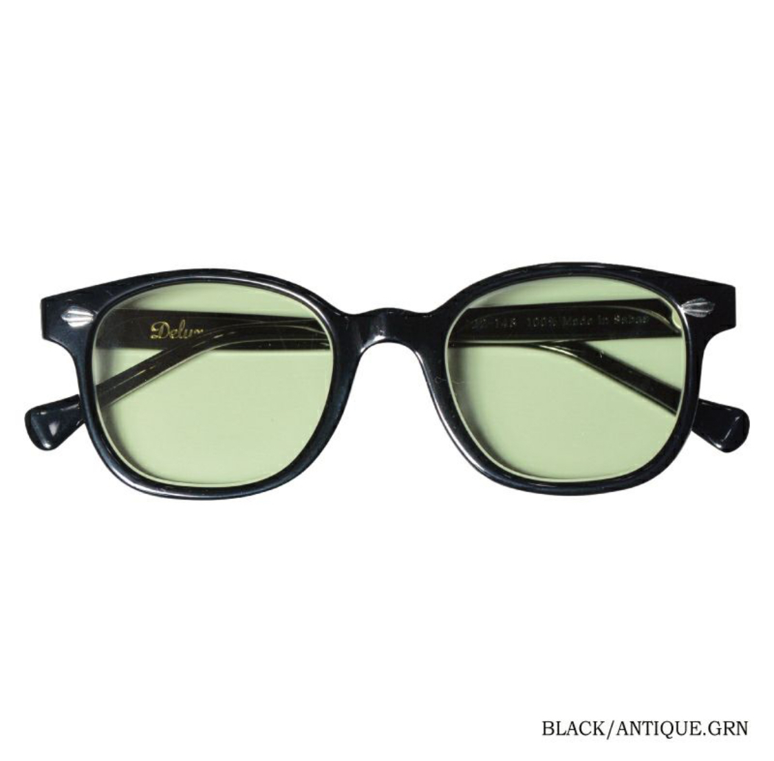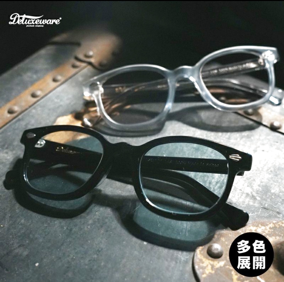 デラックスウエア初となるレンズ&フレーム製品「DFW-001」。レンズ&フレーム含むメガネの産地である福井県鯖江市に密着し、一から職人と共に創り上げた完全オリジナルのウエリントン型レンズ&フレームです。現在希少なセルロイド素材と貫通リベット仕様、テンプルにはデザイン座金が忍び日本人に合わせた掛けやすさを追求した製品です。また、レンズにはアクリル製のフラットレンズが付き、ヴィンテージレンズやアンティークレンズから抽出したオリジナルカラーで雰囲気を選べます。鯖江のメガネ職人を介し全250工程を経て仕上げた本物の創りと素材をニューヴィンテージのスタイルで楽しんで頂ければと思います。