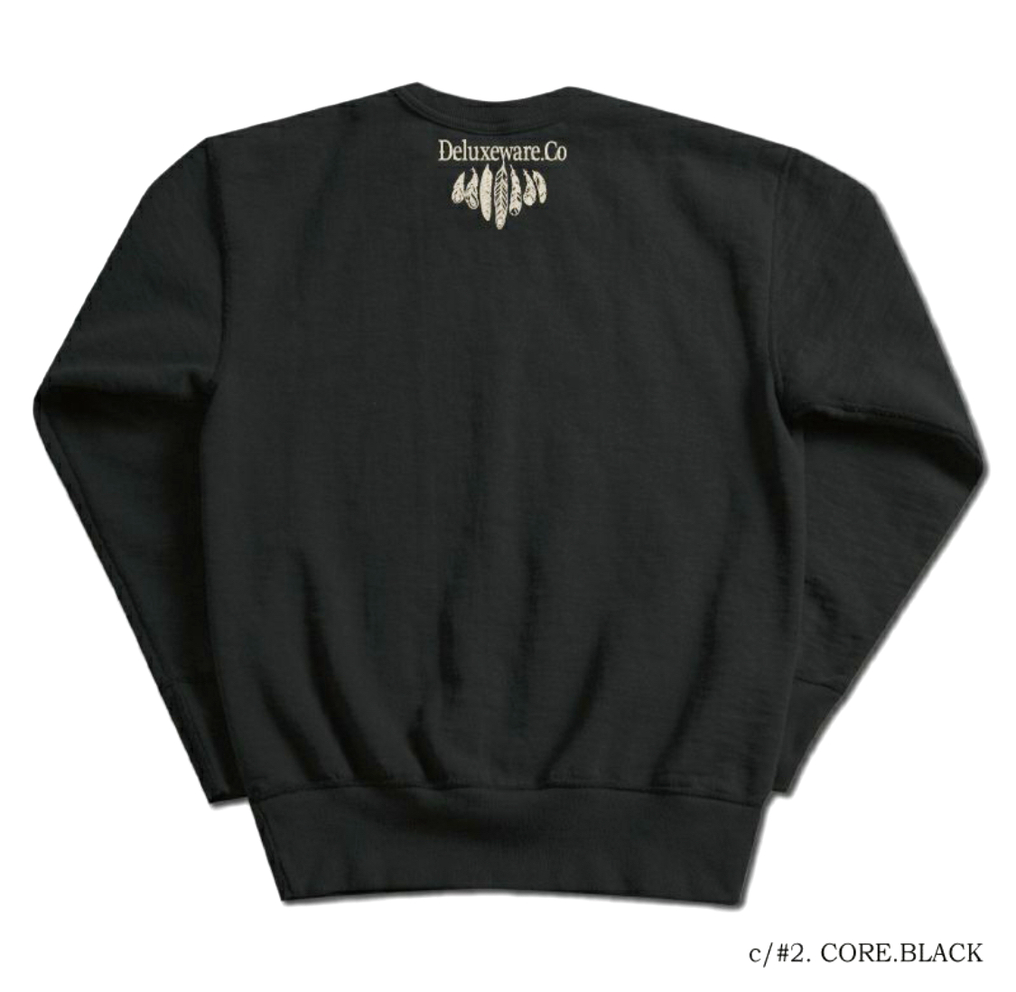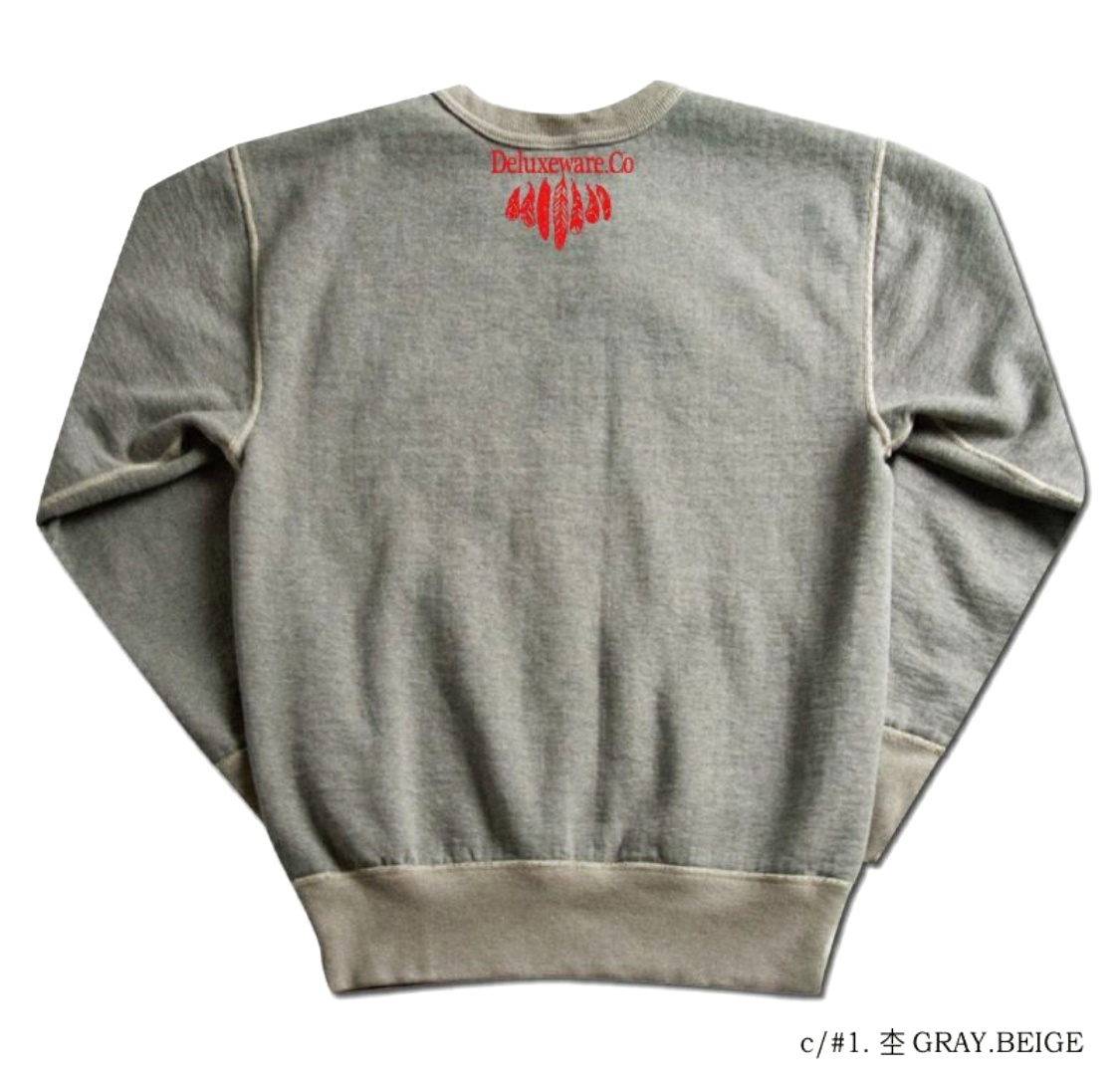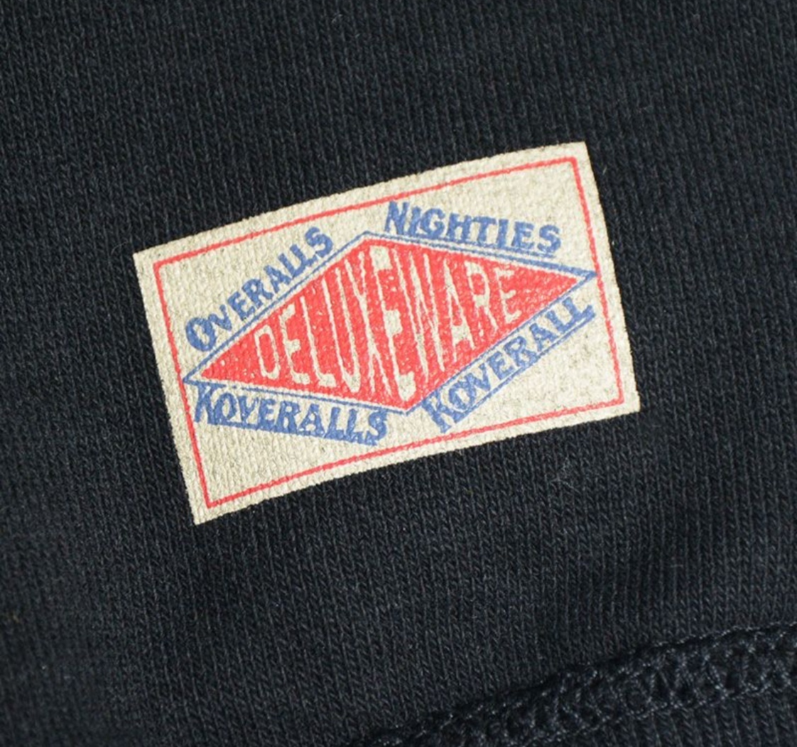 1930sから原型を創り始め、1940sには華々しく市場に出回ったコットン製ニットのスウェットシャツ。首元にガゼットと呼ばれるV型のはめ込みフライスが付く前Vタイプ、それが前後につく両Vタイプ、セットンスリーブやフリーダムスリーブなどいくつかの種類に分類されます。その枝葉の派生は面白く、コットンニットの質感も含めると数十種類にも及びます。1950s前半、技術の進化と共に新たな紡績機が市場に出回ったことで、より早くより効率的に綿を糸にすることが可能になり、この紡績機のおかげでスウェットシャツはさらに普及したとされています。この紡績機は創る糸質に特徴を持ち、ドライかつ固い質感を持っていたことから必然的に出来上がるコットンニットにもその特徴が反映されていた。この特徴を引き継ぎ更に品質の高みを目指したものがデラックスウエア製スウェットシャツです。