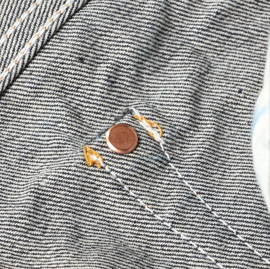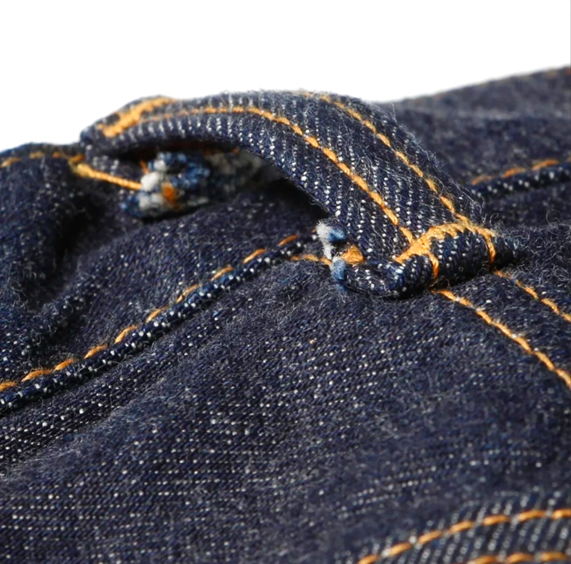 縫製糸には中心のスパン糸を綿糸で包んだ『コアヤーン』を使用。強さを持ったスパン糸と使用により色落ちする綿糸、両方の良さを兼ねそろえたジーンズを長く楽しむために最適な縫製糸で縫い上げました。