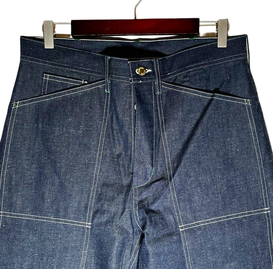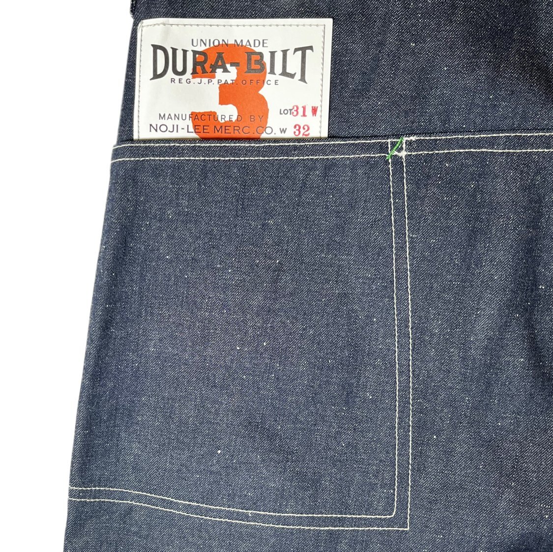 3シリーズ初期型の特徴でもある角型ポケット、そして初期型のみに備わる緑カンヌキ、16.8mmのUNION MADEボタン。