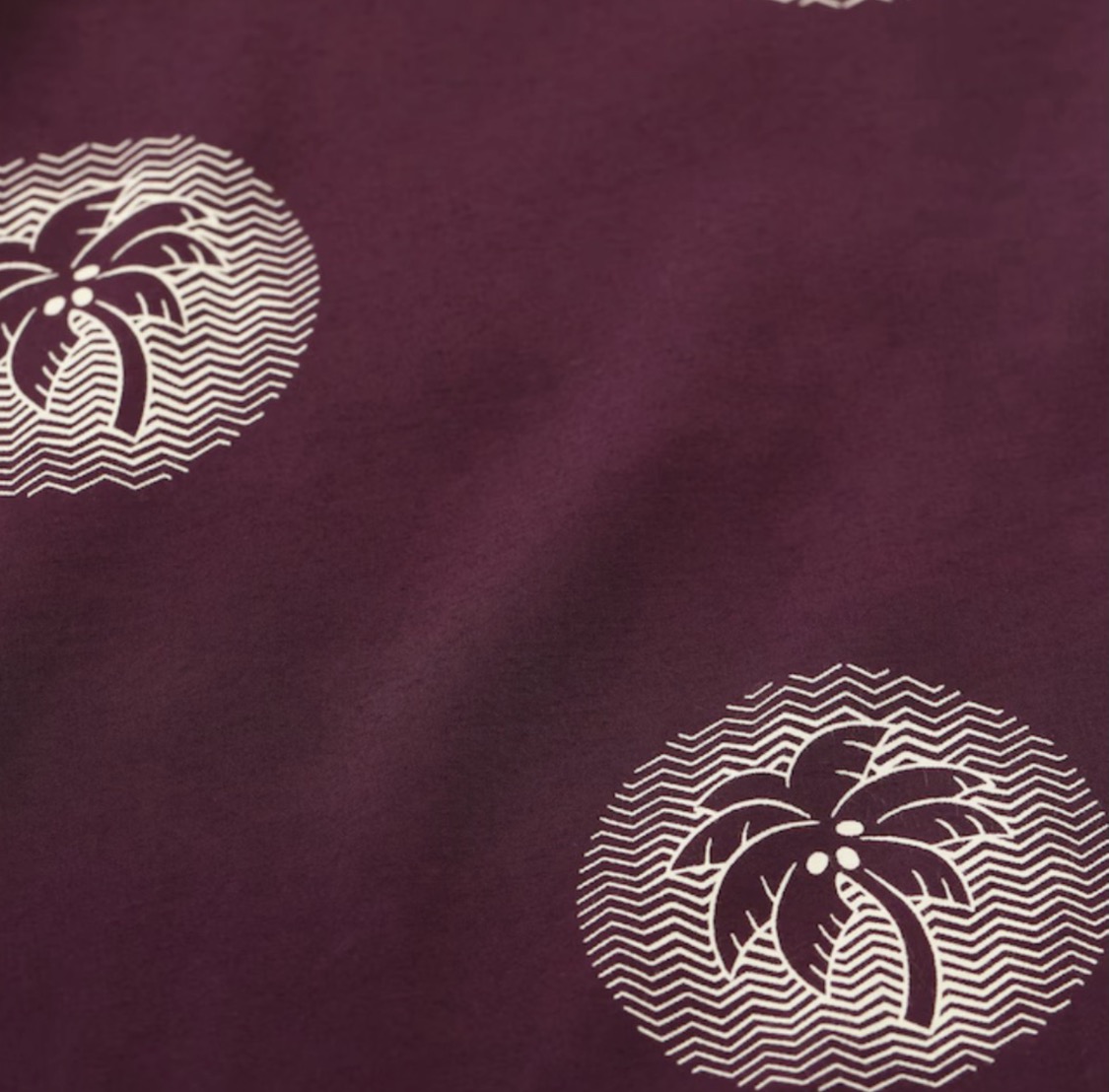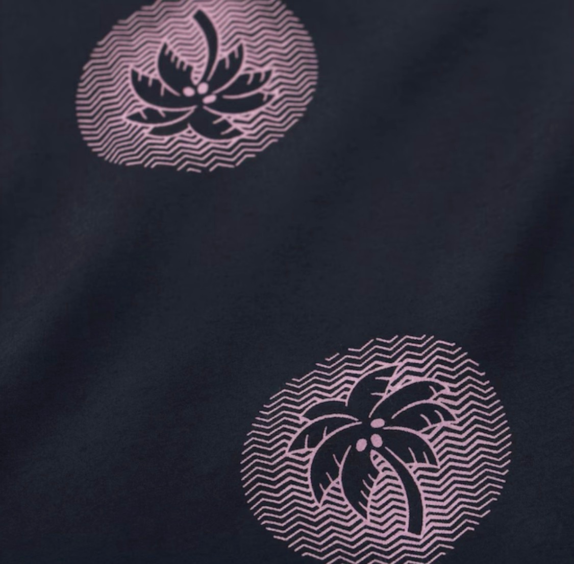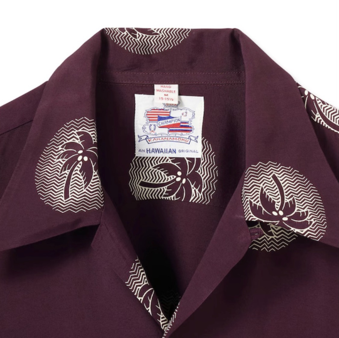 波をイメージしたグラウンドにヤシの木の輪郭を抜染したモチーフがドットとして散りばめられ、洗練された雰囲気とともに強いインパクトを放つ作品となっている。当時のアメリカ西海岸の流行を意識して、構成されたデザインは大きなムーブメントとなり、アロハシャツの地位をギフトという位置付けからファッションアイテムとして扱われるところまで引き上げた。